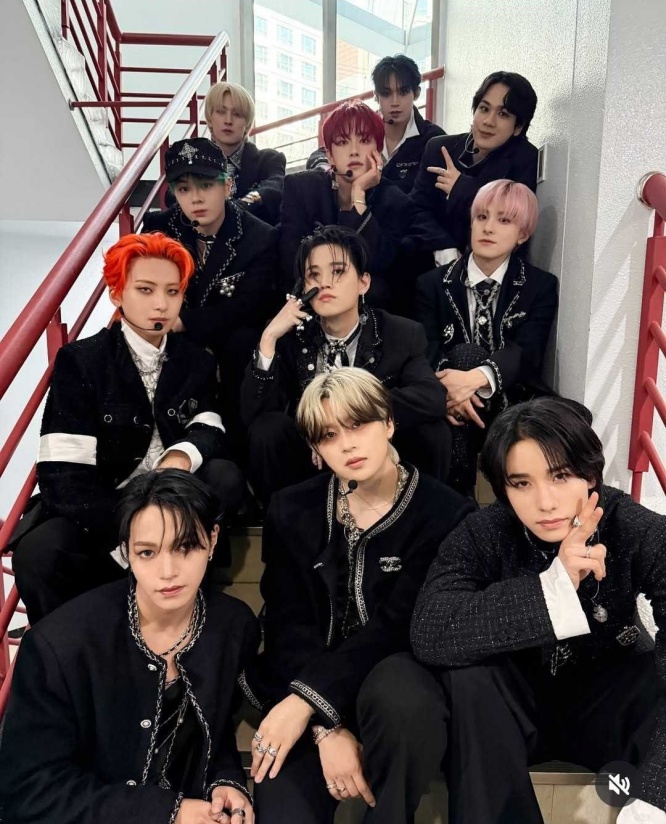 メッセージとともに、真っ黒な衣装に身を包んだメンバーが、階段に座ってカメラを見つめるかっこよすぎるオフショットを公開。