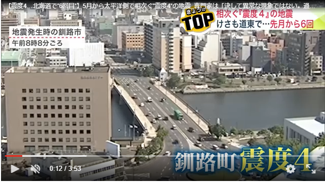 北海道では5月から太平洋側で「震度4」を観測する地震が相次いでいて、19日で6回目となりました。